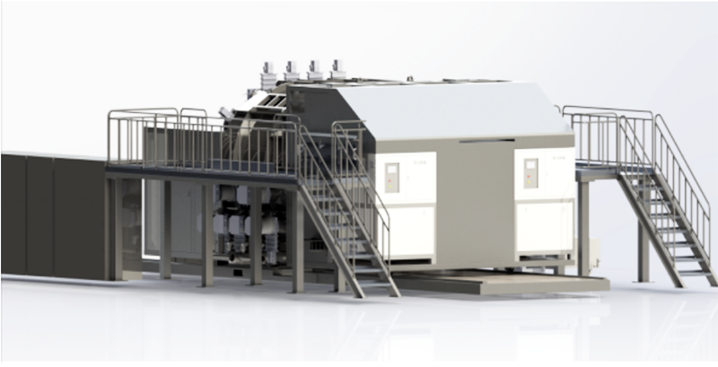 真空蒸發卷繞鍍膜設備,該設備用于在柔性基材(PET等)上離子源預清洗,蒸發鋁金屬層,雙面鍍鋁膜,實現薄膜金屬化,代替傳統鋁箔,整機性能達到國內領先水平。